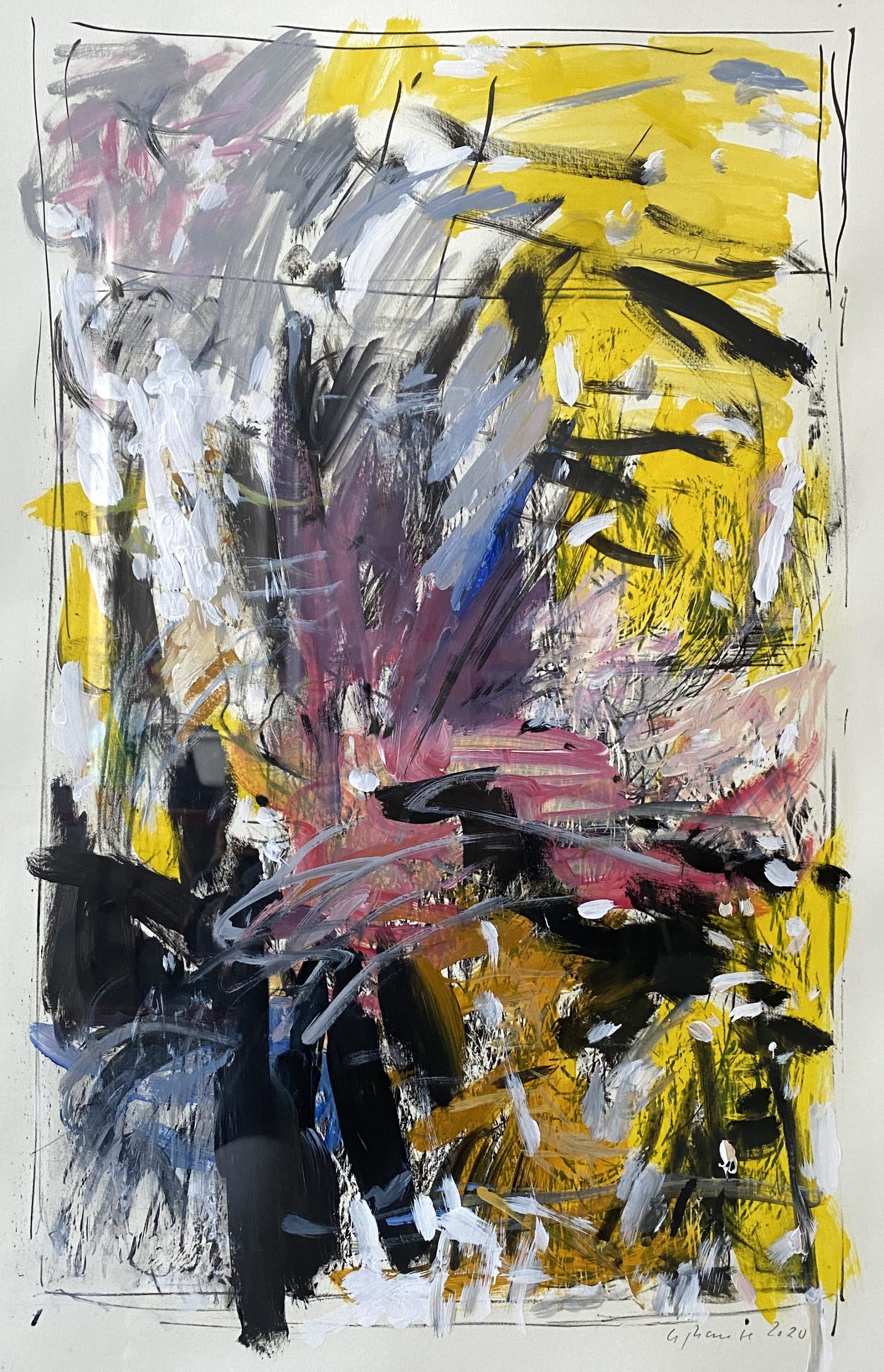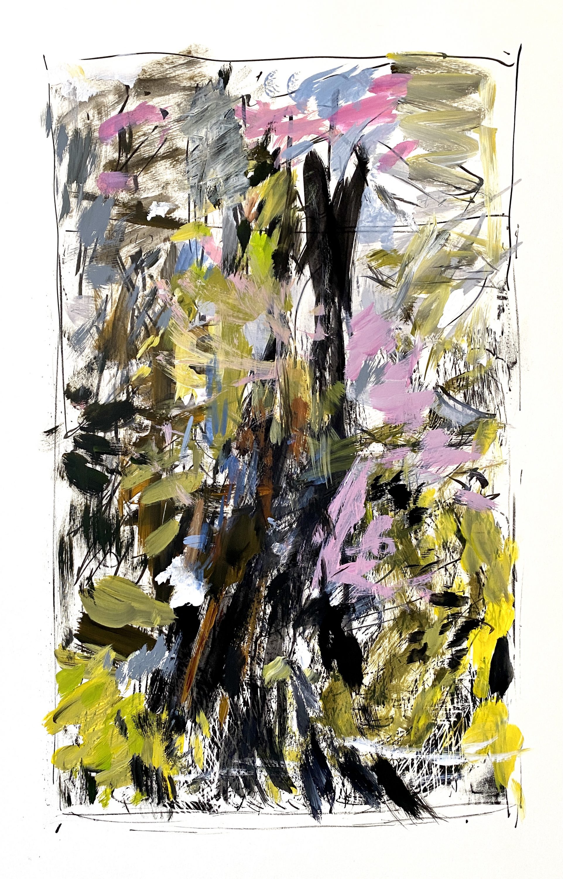 - Lichtung 1, 1995/2020, Acryl auf S/W-Lithografie, 80 x 60 cm
