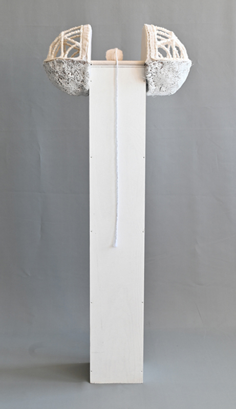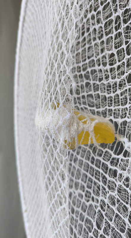 Inzwischen fließen viele handwerkliche Techniken wie Filzen, Häkeln, Knüpfen, Nähen, Stricken etc. in meine Arbeiten ein. Ebenso wie die Auswahl der Materialien in der Entwicklung von der Werk-Idee bis hin zum fertigen Objekt. Opakes oder Durchsichtiges, Festes oder Flauschiges in Faden oder Gewebeform, dies spielt eine große Rolle, für die Umsetzung meiner farbreduzierten, abstrakten Arbeiten.