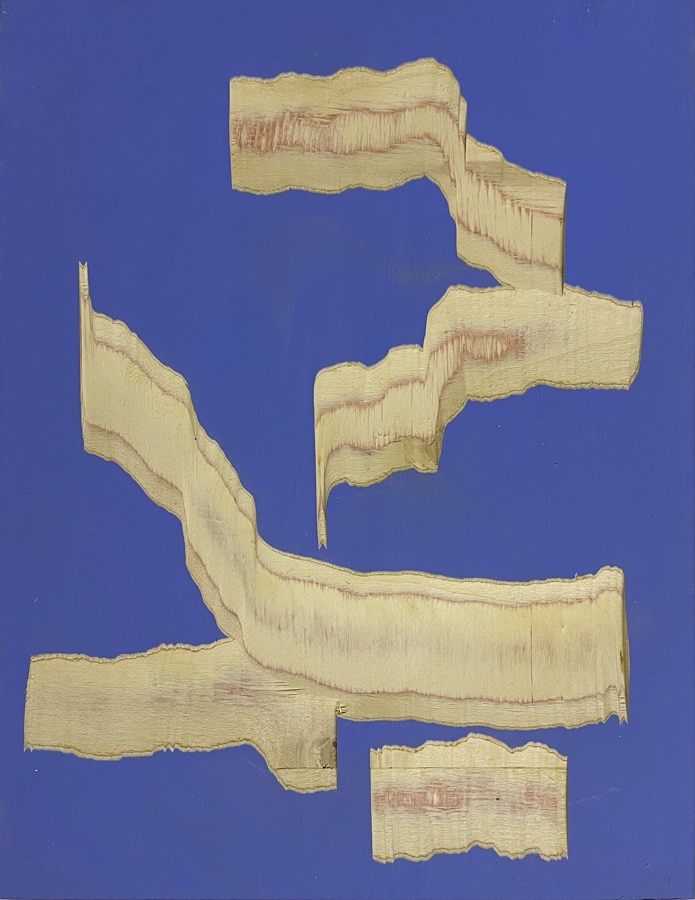Karlheinz Heming: Sägezeichnung, 2025. Acryl auf Sperrholz, 40 x 30 cm.