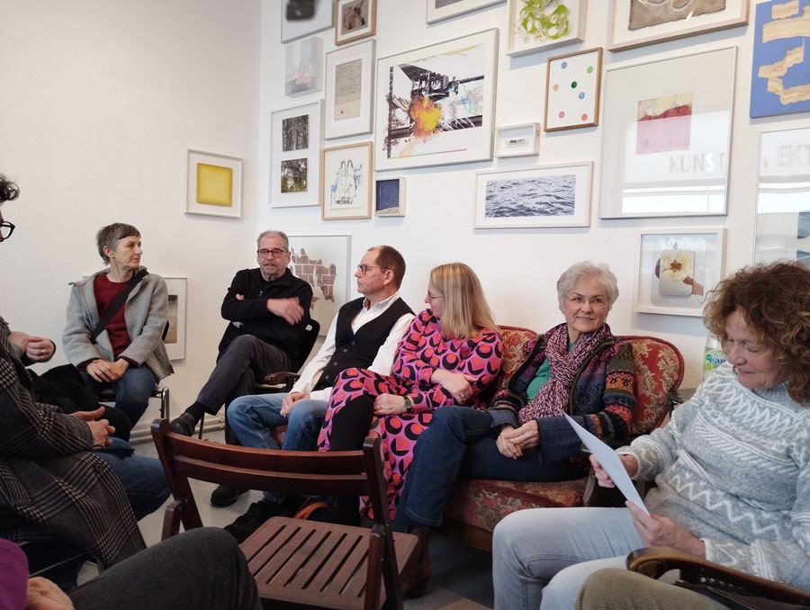Mit Joachim Hinz-Siever (Ausleiher), Mieke Grothues (Ausleiherin), Christine Prause (Künstlerin), John Waszek (Künstler), Brigitta Heidtmann (Artothekleiterin, Künstlerin)