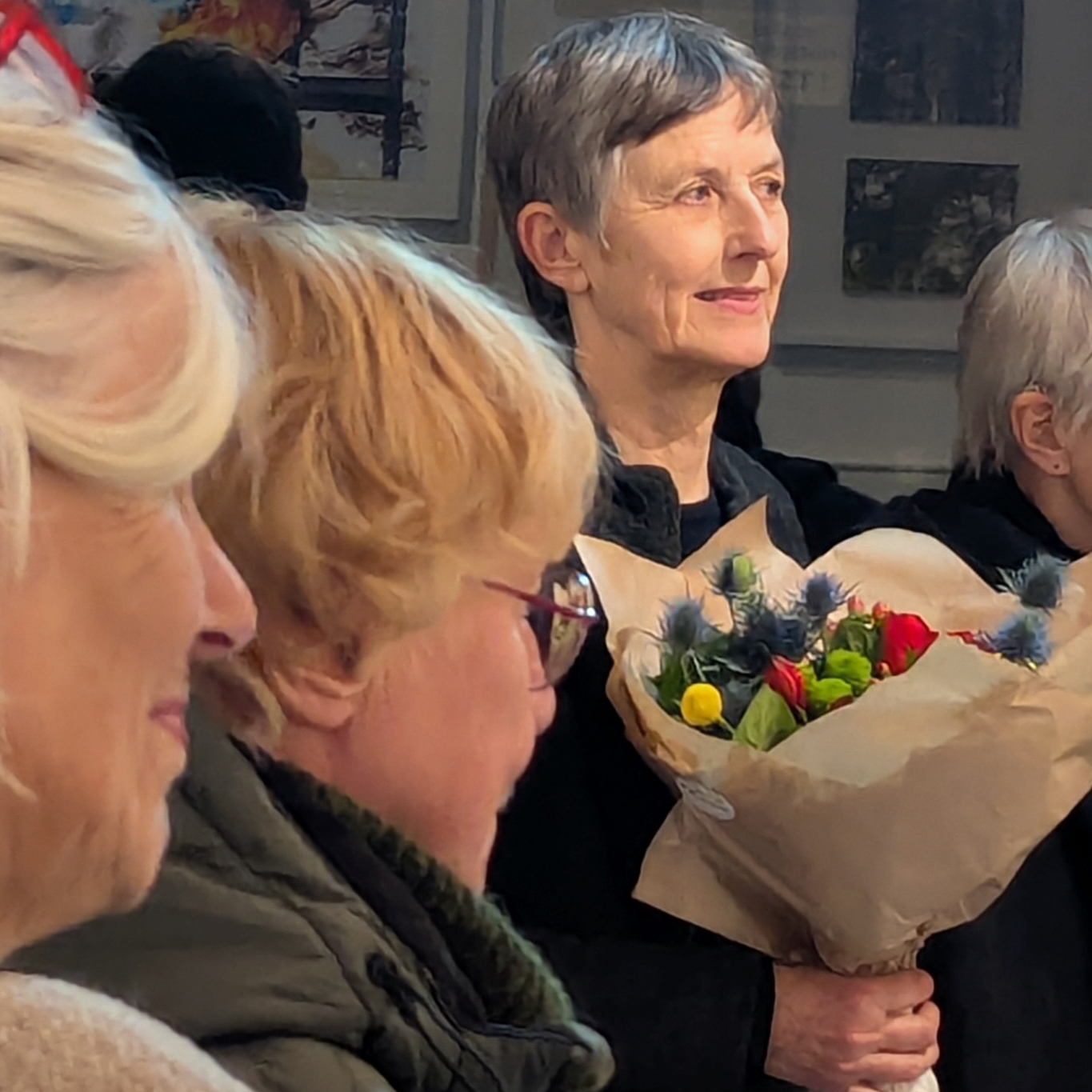 und viele Mitglieder und Freunde der GKK kamen zur Feier. Nach den Begrüßungsworten der Krefelder Kulturbeauftragten Dr. Katharine Leiska und einem fachkundigen Abriss über die Geschichte der Artotheken in Deutschland von Eva Caroline Eick [Kunstmuseen Krefeld] gab es doppelt Grund zu feiern: Das Jubiläum der Krefelder ARTOTHEK und das 10-jährige Dienstjubiläum von Artotheksleiterin Brigitta Heidtmann. Danke für das große Engagement.