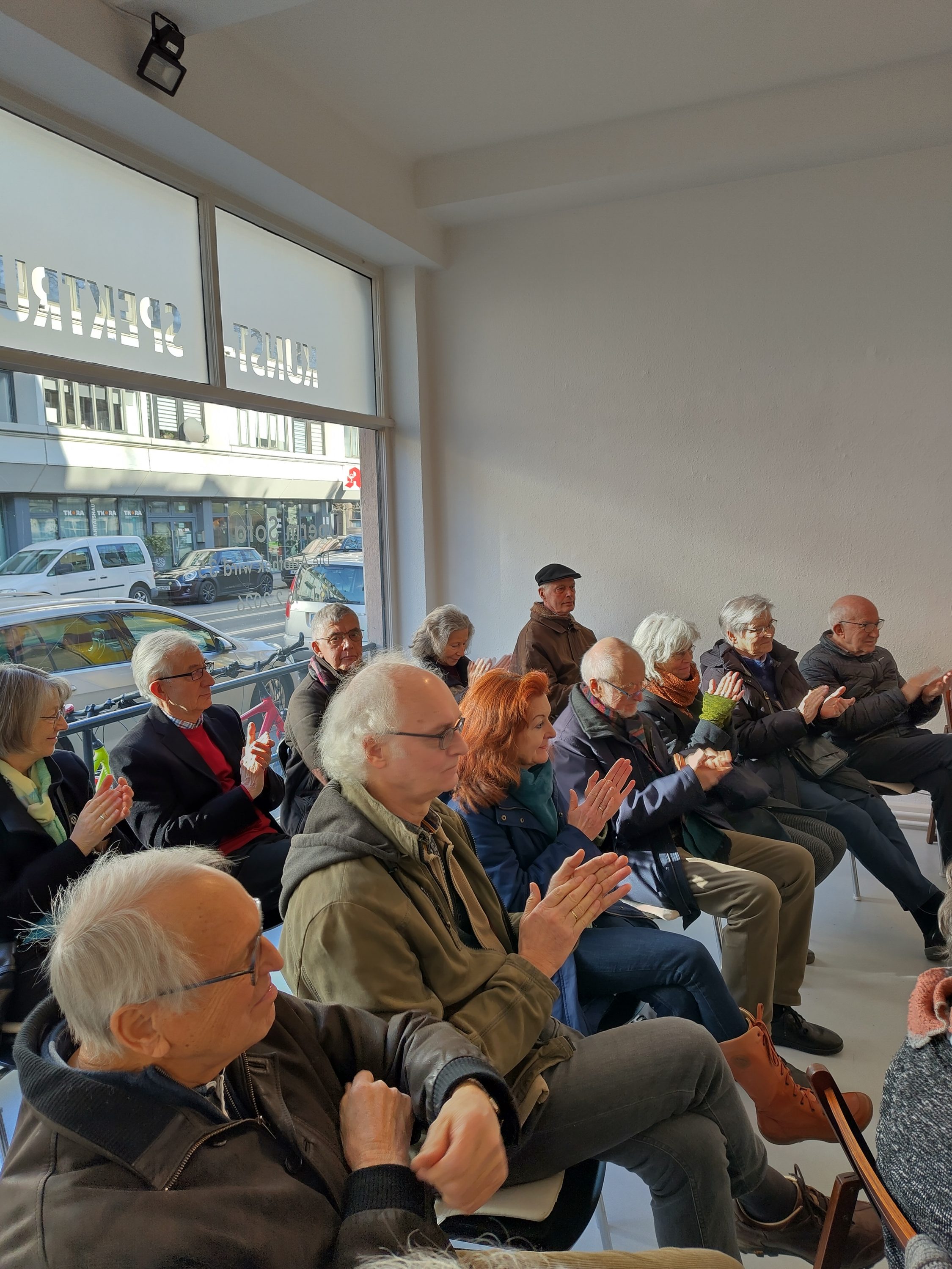 Im Rahmen des Jubiläumsprogramms hatte GKK-Mitglied JOHN WASZEK zu einer Lesung in das Kunst-Spektrum eingeladen. Dabei stellte er sein jetzt erschienenes Buch „Gesammelte Gedichte 1983 – 2023“ vor und las Auszüge aus seinem Band „Stimmen“. Ein gut gefüllter Büchertisch gab einen interessanten Überblick über sein literarisches Schaffen.