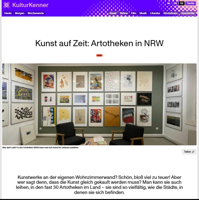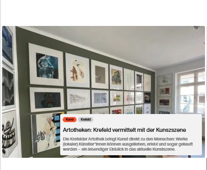 Und zur Artothek im Haus der GKK: „Anders als andere Artotheken wird die Krefelder Artothek vom Verein Krefelder Künstler*innen selbst organisiert. Besucher können Originalkunst entdecken, länger zuhause betrachten und bei Gefallen erwerben. So bietet sie einen persönlichen Zugang zur regionalen Kunst und fördert das Entdecken und Erleben.“18.12.25